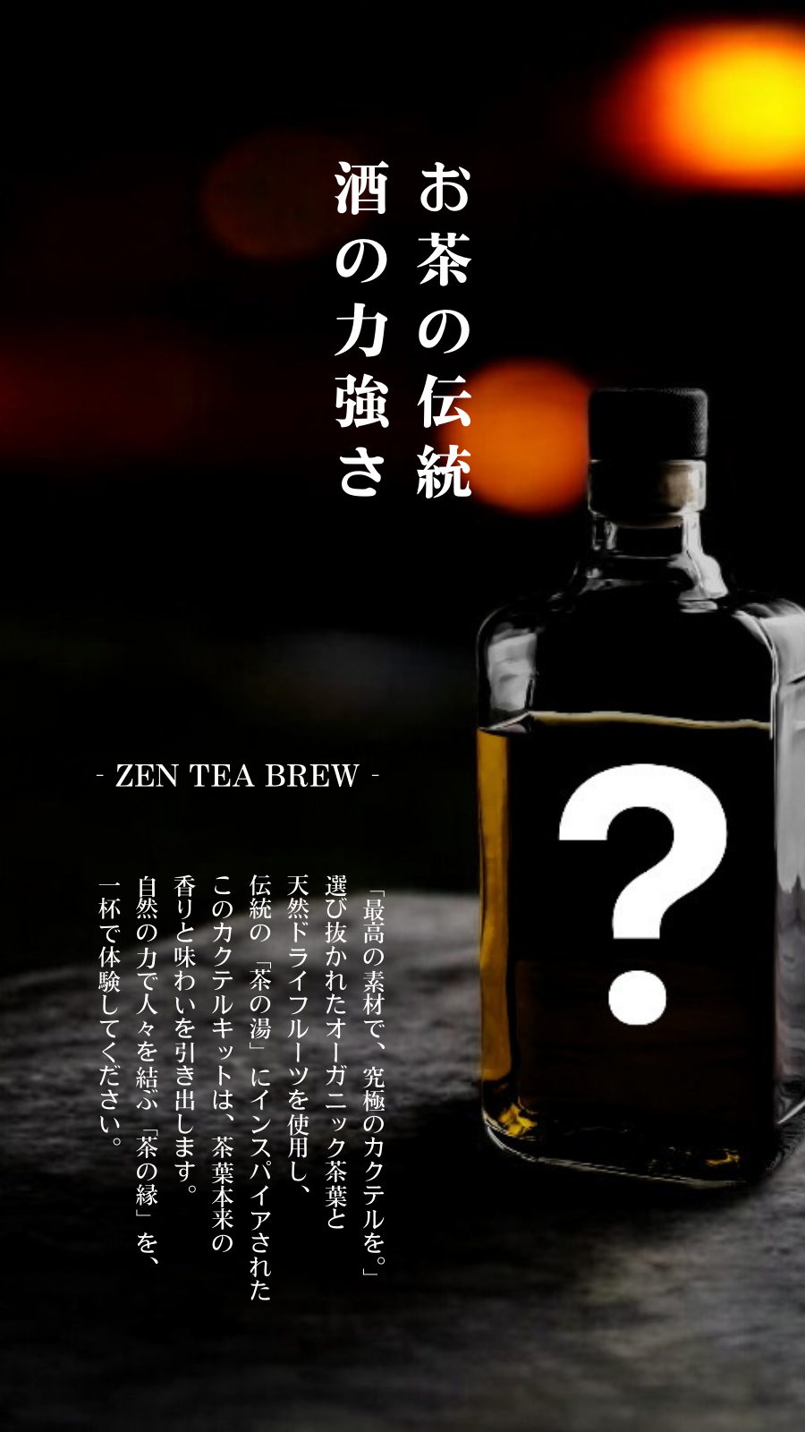 そのまま呑んでも、ロックでもんでも、炭酸で割っても、カクテルのようにも楽しむことができます。今までにないティーカクテルを楽しんでください。